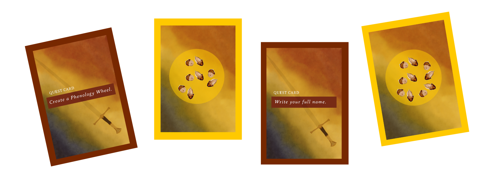In Pocket Forest you don’t just collect cards, you have to earn them by completing Quests. A Quest is a real-life learning objective. You must complete the task to collect Acorns. Your Quest may be to illustrate a story, memorize a poem, or find 5 spirals in nature. When you complete a Quest, you earn the amount of Acorns pictured on the back of the card.