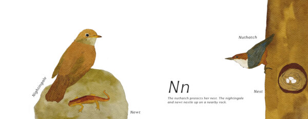 A Walk Through Alphabet Forest includes an illustration and verse for every letter of the alphabet.
