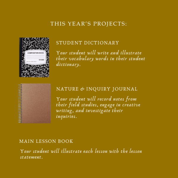 Each lesson includes an illustration and simple lesson statement. Your child will copy these pages, or create their own scenes in their Main Lesson Book.