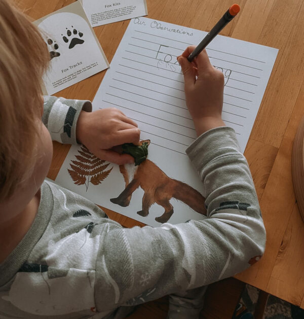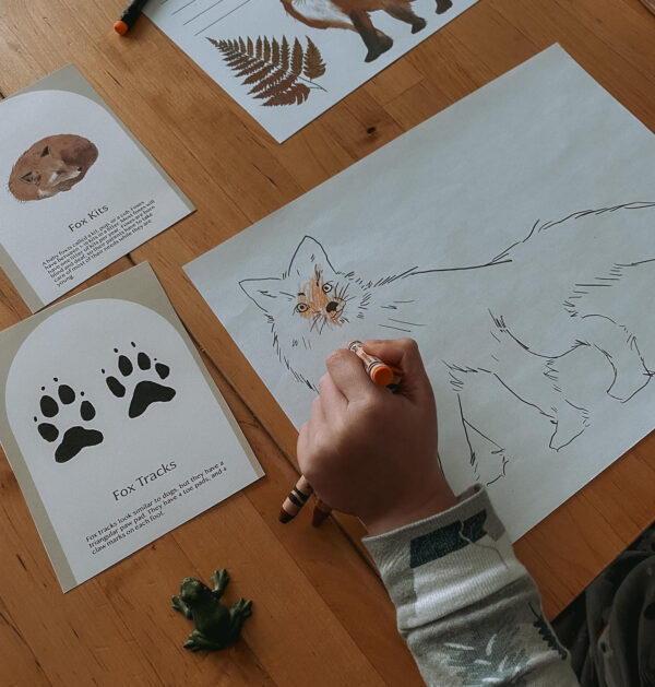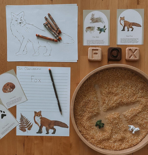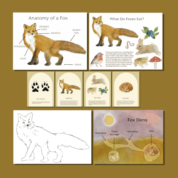 4 Fox Flash Cards in two sizes, small (4.25 x 5.5 inches) and large (5.5 x 7.12 inches)