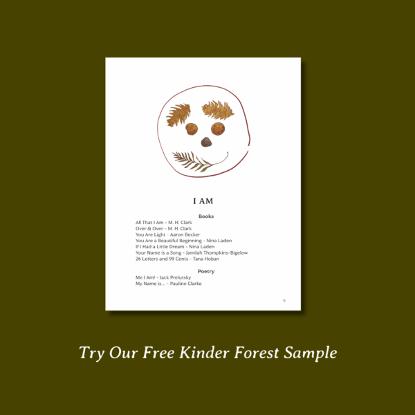 that brings education to the child’s whole being. Each nature lesson is experienced through poetry, art, whole body movements, nature crafts, fine motor activities, finger plays and recipes. Kinder Forest is the sequel to Alphabet Forest.