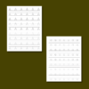 Each letter has 4 associated pages. The first page includes a watercolor illustration with a mix of capital and lowercase letters. The second page is tracing practice for the capital letter. The third page is a tracing practice for the lowercase letter. The forth page is blank with assisted lines.
