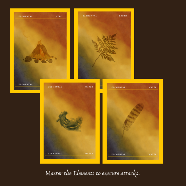 Attacks require Elemental cards. Each Animal is associated with a different Element; Air, Earth, Water, or Fire. Which Elements will you choose for your Deck?