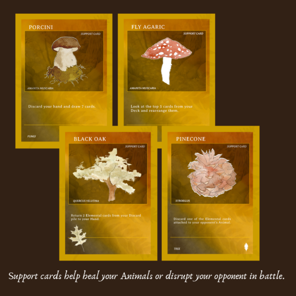 Plants and Fungi support your Animal cards. Keep a balance of both to create a well-rounded Deck. Pocket Forest comes with 13 different Plants and Fungi and at least 2 copies of each card.