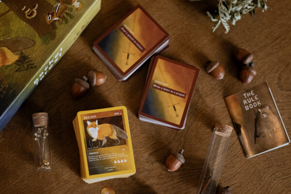 Quests are learning objectives such as “Illustrate a story,” “Memorize a poem,” or “Find 5 spirals in nature.” When you complete a Quest, you earn the amount of Acorns picture on the back of the card.